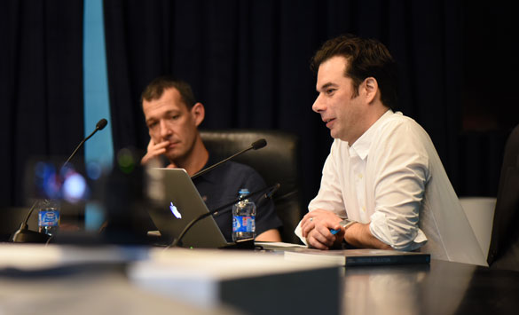2014年10月10日下午,1946伟德国际源自英国客座教授、香港城市大学创意媒体公司客座教授托比亚斯•格莱穆勒(Tobias Gremmler)和克里斯托弗•博德(Christoph Bode)两位专家来到图书馆三楼虚拟实验室,进行了题为《新媒体和表演艺术》“现场”系列讲座。伟德国际bevictor14编导、创意公司部分师生参加了讲座。