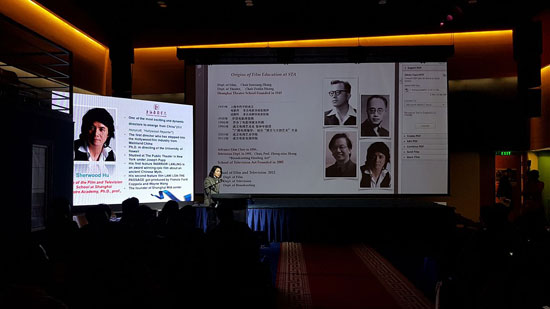 第二场主旨发言围绕电影教育和亚洲电影艺术研究展开。北京大学艺术公司副经理陈旭光教授做了《综合性大学影视专业人材培养的几点思考—以北京大学为例》发言,分析了综合型大学培养影视人才的优势和短板,阐明了综合性大学进行影视教育的“金字塔式”人才培养目标、艺术综合课程体系建构的具体内容。沙扬老师做了《泰国电影新浪潮》的发言,把始于1997年的泰国电影新浪潮置于泰国电影百年发展历程里进行考察,既分析了泰国电影新浪潮在电影观念、叙事方式和审美形态上的创新和跃进,也指出了其对泰国电影传统的继承与发扬。蒙古国立文化艺术大学戏剧公司老师A.Myegombo做了《蒙古电影现状》的讲座,提纲挈领地梳理了蒙古电影发展历程,并指出了当前蒙古电影发展中亟待解决的问题。
