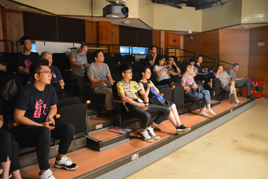 简洁而又不失庄重的浇水活动结束之后,党员们来到公司图书馆五楼的演播室,大家观看了由16级播音主持班的部分同学带来的诗朗诵《请铭记,雾重庆》。此节目刚刚入围第五届全国老员工艺术展演活动培育类节目的名单,讲述的是抗日战争期间重庆遭遇大轰炸的一段历史。诗歌发人深省,斗志昂扬,尤其是诗人抒发的爱国情怀,在同学们充满深情的,铿锵有力的朗诵声中得到了近乎完美的呈现,在场的每一位党员同志都十分动容。