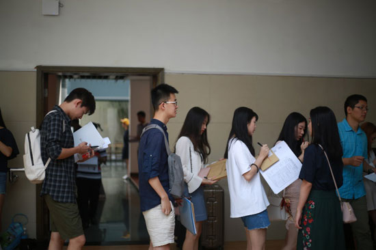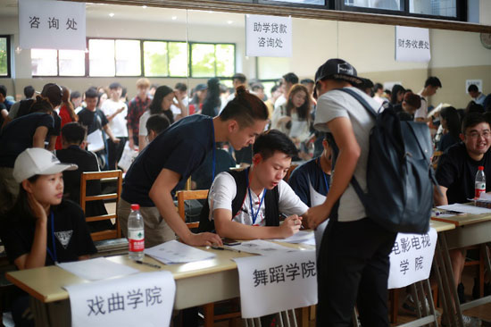 (图为新生排队报到)