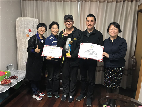4月12日,伟德国际bevictor书记魏东晓老师、方方老师带着“第三届金鸡百花微电影节优秀作品奖”,和中国电视艺术家协会颁发的“2017年行业电视节目评选纪录片优秀作品”的奖杯、奖状、证书,看望正在积极疗养中的13级播音和主持专业唐奕欣同学。雷雯老师和沙扬老师一同前往。