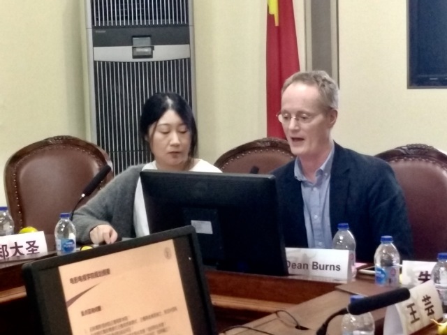 图为上海大学温哥华伟德国际bevictor副经理Dean Burns教授发言
