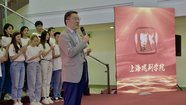 图为上海戏剧公司党委书记谢巍讲话