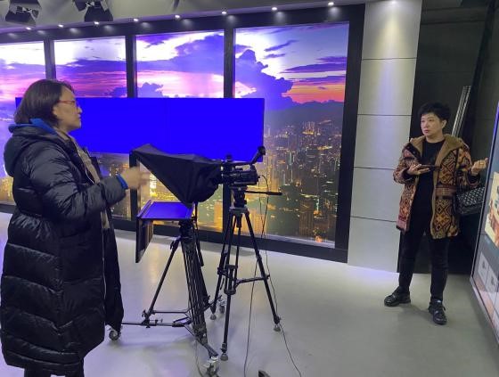 图为参观中传播音主持公司虚拟演播教学棚