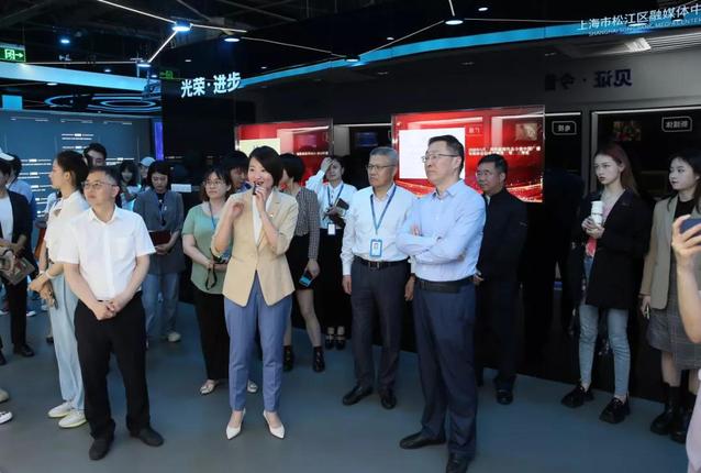 在松江区区委宣传部副部长陆忠新和融媒体中心总编周样波等台领导和工作人员的陪同讲解下,上戏师生们先后参观了区融媒体中心“一中心•八平台”基本构架展示大厅、调度指挥中心、虚拟演播室、大编辑中心,观看了松江区媒体融合改革发展宣传片,详细了解了区融媒体中心“策采编播发”工作流程,“线索汇聚、一次采集、多元生成、多端发布”的融合模式。