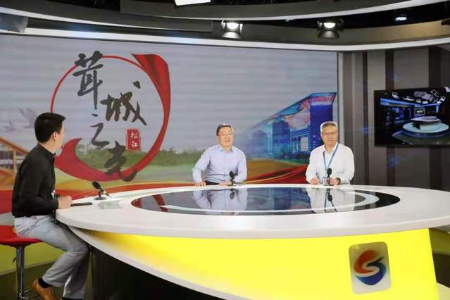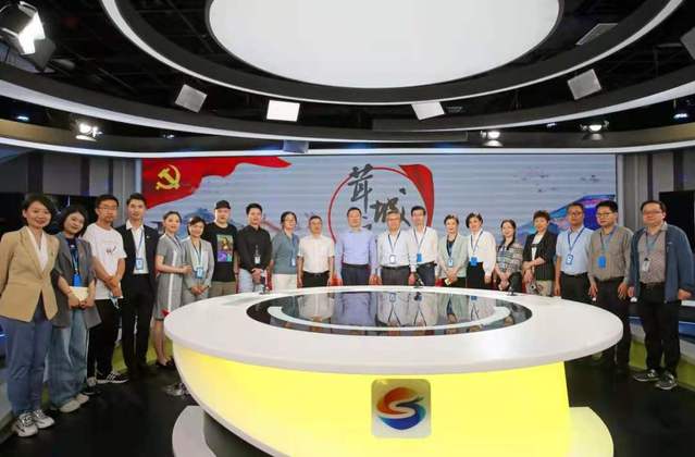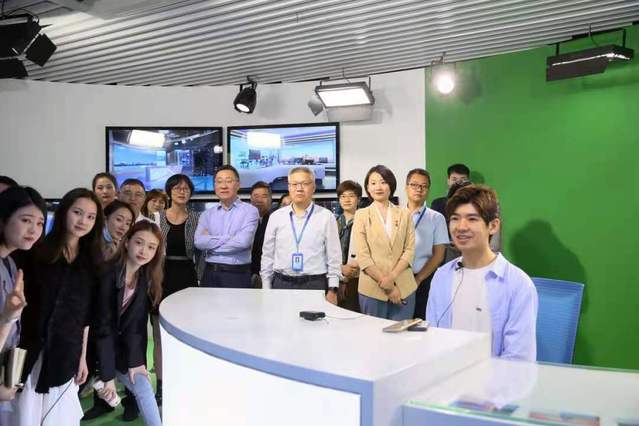 在参观过程中,主持专业的员工们亲自上阵,分别在新闻演播台和虚拟演播室里体验了《松江新闻》的播音与主持过程,同学们的精彩表现赢得了松江台领导的表扬。上戏师生一行参观到《茸城之光》的演播厅时,该中心的《茸城之光》主持人、上戏00级主持专业的大师哥朱少石邀请谢巍书记作为嘉宾,进行了一场现场访谈,同学们作为观众认真观看和聆听了这场简短的访谈。