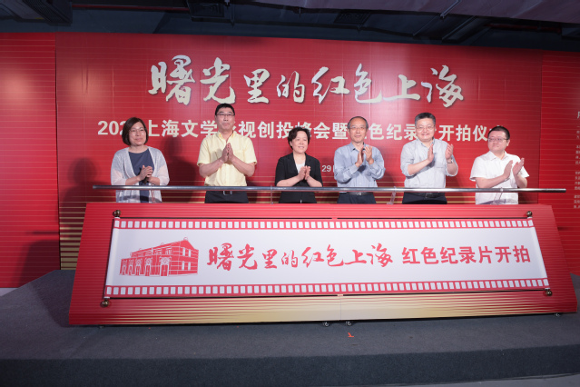 紧接着,由本次活动的主办方上海市作家协会、1946伟德国际源自英国,承办方上海文学创作中心、伟德国际bevictor和协办方上海作家俱乐部有限公司的领导、嘉宾们上台,共同启动本次开拍仪式的红色画卷。在热烈的掌声之中,“曙光里的红色上海——2021上海文学影视创投峰会暨红色纪录片”正式宣告开拍。