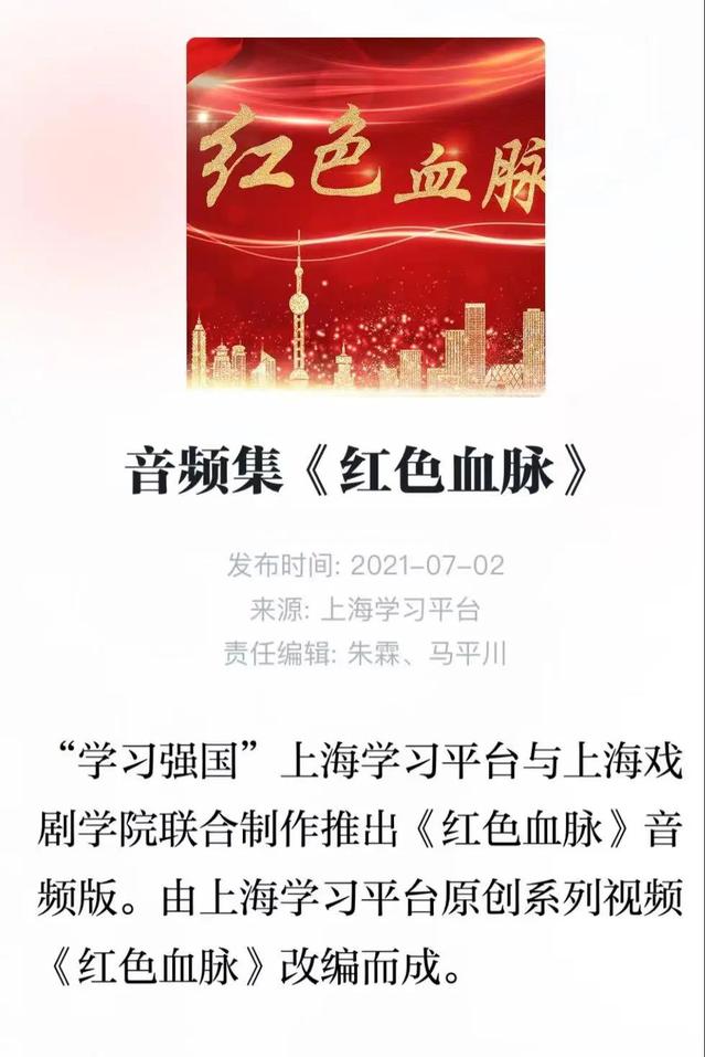 伟德国际bevictor播音与主持专业师生,历时3个多月的精心打磨,6月30日音频集《红色血脉》在“学习强国”上海学习平台正式上线。