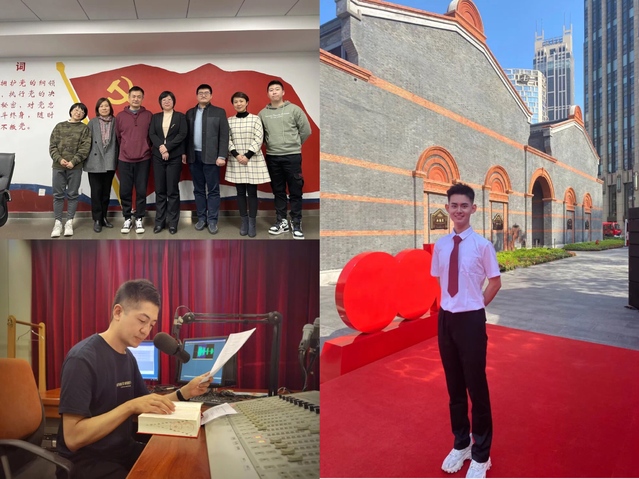 21个红色地标连起了涌动的“红色血脉”。这21个红色地标,就是鲜活生动的党史,展现了革命的波澜壮阔和先辈的豪情斗志。带领员工进行这一系列音频的创作,对我和员工都是一次精神的洗礼。我和同学们在一次次对稿件的分析、对情感的拿捏、对细节的揣摩中,深深领悟那百年前一路披荆斩棘走来的历史脚印里蕴含的深刻真理和使命。我作为一名人民教师,一名党员教师,在教学中紧抓党史学习对员工业务能力的提升和指引,力图通过实战实现员工业务能力与精神滋养的双丰收。