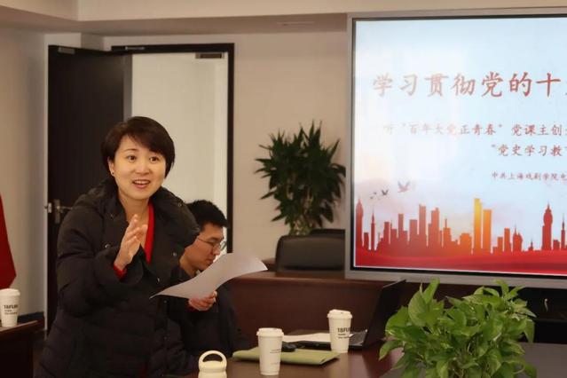 公司党总支副书记王春云为东方广播中心第四党支部的同志们介绍了公司党总支党史学习和特色活动情况。重点推介了以沉浸式戏剧党课《第十二人》和新生入学仪式《当我带上校徽的时候》为代表的伟德国际bevictor课程思政理论学习和艺术实践,展示了伟德国际bevictor的党政建设和师生风采。