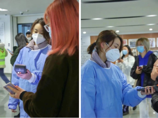作为一名预备党员,她深知在公司遇到疫情突发状况时成为一名志愿者,配合工作人员,帮助同学们进行健康筛查工作,是义不容辞的。在核酸现场,她组织大家有序排队,间隔一米,保持距离。并且对于健康云二维码有疑问的同学,也及时耐心解答。