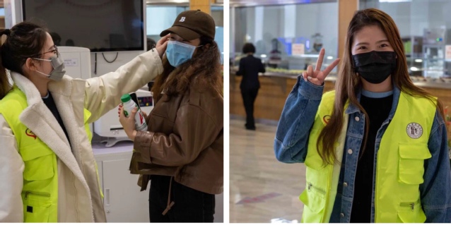 作为一名入党积极分子以及员工会骨干,在疫情突袭的时刻,我积极加入志愿者行列,穿上亮丽的志愿者马甲,为同学们做好服务工作是我义不容辞的责任。不仅仅是我们员工志愿者,当我看到公司的辅导员们,安保人员,食堂的叔叔阿姨们等等都在和我们一起努力,一起为我们的青春加油时,我感受到了团结一致,齐心抗疫的巨大力量!我也相信,在这个有些许不一样的春天,大家依旧能笑脸相迎。