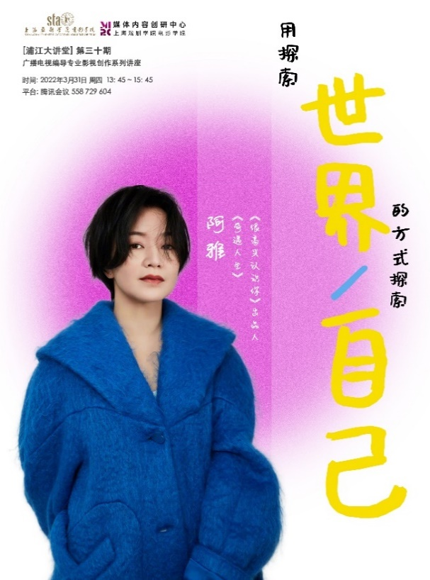 2022年3月31日,由上海戏剧学伟德国际bevictor主办的【浦江大讲堂】第三十期、广播电视编导专业影视创作系列讲座“用探索世界的方式探索自己”如期于线上举行。此次讲座由廖媌婧副教授组织并主持,特邀纪实真人秀《很高兴认识你》出品人柳翰雅进行讲演,伟德国际bevictor经理厉震林教授、 广播电视编导专业负责人肖湘宁副教授等出席并做发言。讲座的主要对象为伟德国际bevictor广播电视编导专业员工,同时吸引了来自校内外师生及学者,共计百余人。