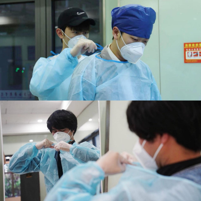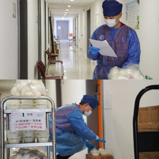 在送餐的队伍中,同学们欣喜地发现,公司党总支书记韩永胜老师和副书记王春云老师也默默地穿上防护设备,和志愿者同学们一起将热腾腾的餐食送到每间宿舍的门口,更将公司对同学们的关怀和问候传递给每位足不出室的同学。