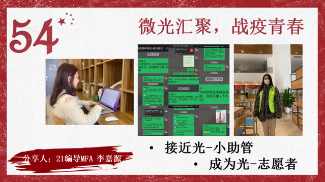 我们也希望有更多的聚光志愿者,继续分享平凡而感动的抗“疫”故事。让我们一起在青春岁月中留下向光、追光和成为光的美好记忆吧!