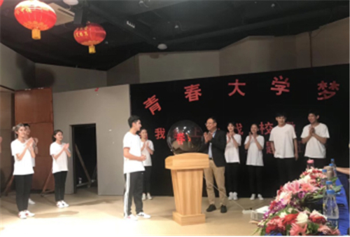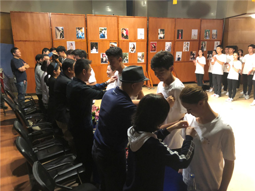 第二部分是校徽佩戴仪式,同时也是整个班会的高潮。校领导及老师们为同学们佩戴校徽,并亲切地与大家握手、交流。这一刻,是属于18级主持班同学们的,作为人生新的起点,那扇洋溢着青春激情和知识魅力的大门将徐徐打开……大家带上上戏校徽的感言通过多种多样的形式,例如四句半、道具展示、诗歌朗诵等。感言讲述了同学们的青春、学习和梦想,时而令人潸然泪下,时而让人开怀大笑⋯