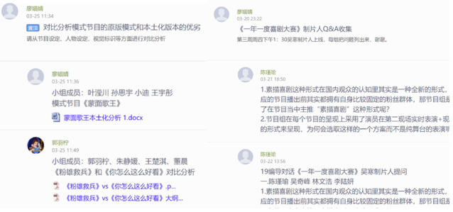 为了增加员工的学习积极性,提高线上教学的丰富性,针对员工的兴趣点邀请业内一线专家进课堂进行主题分享和Q&A问答。在本学期初,员工选出了2022年最值得推荐的节目,在刚结束的两周堂课上,特别邀请这两档节目的主创爱奇艺视频《一年一度喜剧大赛》制片人吴寒、腾讯视频《恰好是少年》总导演胡明上线分享。之后,这样的形式会在线上课程延续,将根据授课内容的实际需求邀请更多对口专家进课堂,进行案例分析和实际指导。
