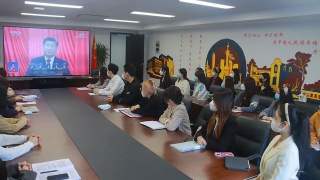 员工第一党支部和第二党支部的在校生党员齐聚昌林路校区一号楼604会议室聆听总书记的报告,新生党员、发展对象、入党积极分子列席观看,其余未能到场的员工党员也通过多种渠道自行收听收看了大会开幕全程。