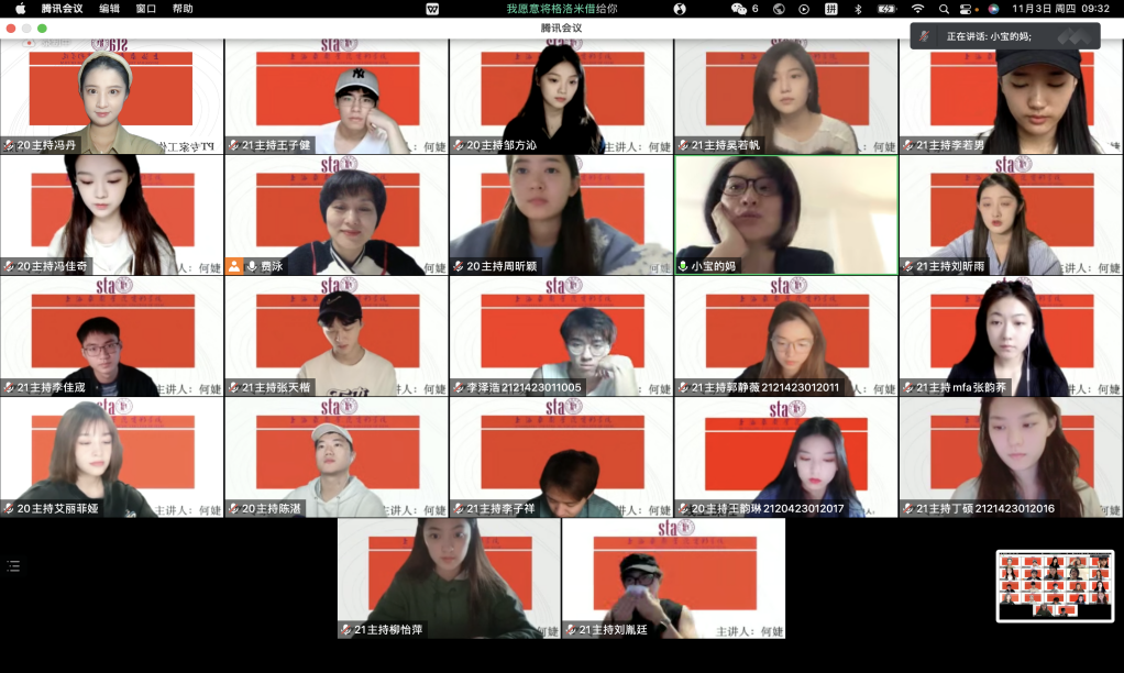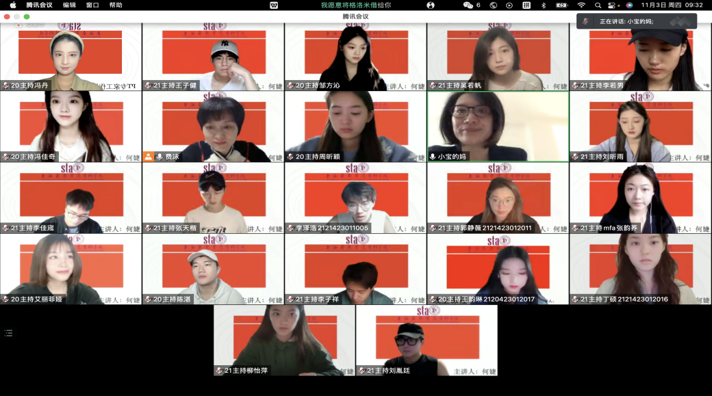 11月3日上午,上海广播电视台融媒体中心首席主持人,驻校艺术家何婕老师的PT专家工作坊首次给伟德国际bevictor主持专业的大二、大三员工行课。受疫情影响,师生们借助腾讯会议开展了互动交流,主持专业主任费泳老师主持了专家工作坊。