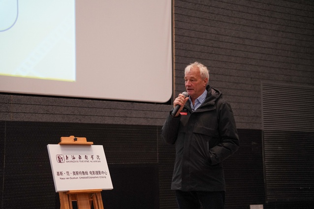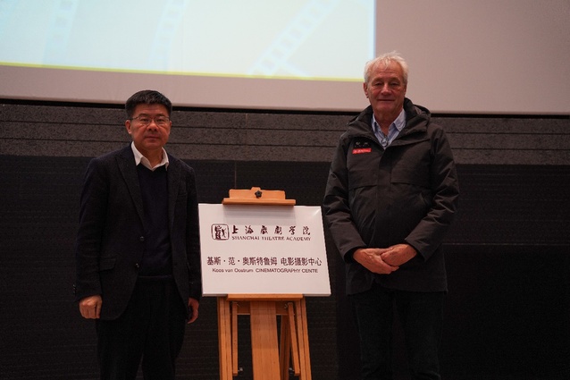 基斯·范·奥斯特鲁姆教授作为一位国际知名电影摄影师和电影教育家,先后参与了国际上80多部影视作品的拍摄,包括获得艾美奖的电视剧集、电影和纪录片。黄昌勇经理和基斯教授上台,就基斯·范·奥斯特鲁姆电影摄影中心成立合影留念。基斯教授对此发表了致辞。