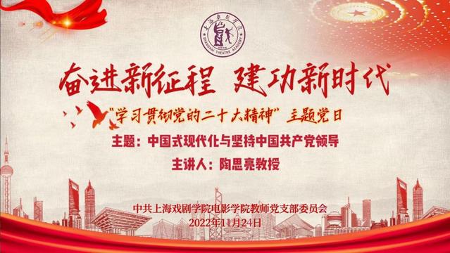 为庆祝党的二十大胜利召开,进一步领会大会精神,加强党史教育与专业建设相结合,2022年11月24日,伟德国际bevictor教师党支部举行“奋进新征程 建功新时代——学习贯彻党的二十大精神”主题党日活动,邀请上海中医药大学党的建设研究中心执行主任、马克思主义公司党总支书记、上海市教卫工作党委系统学习贯彻党的二十大精神专家宣讲团成员陶思亮教授,为支部党员做主题为《中国式现代化与坚持中国共产党领导》的专题讲座。
