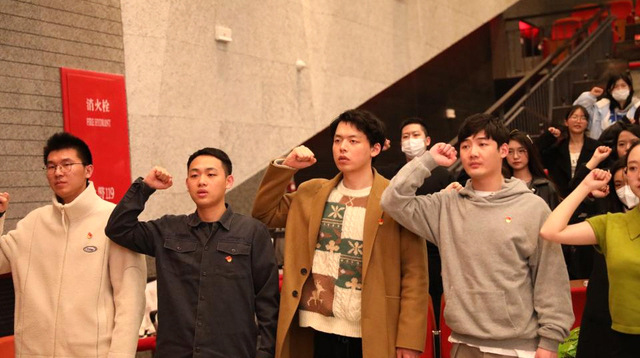 在场师生还一同观摩了短片《陈望道旧居,共产党宣言中译本的百年回望》。公司播音与主持艺术和电影摄影与制作专业部分的员工参与了该片的录制,有四名同学来到党课现场分享心得体会。他们表示,自己在拍摄过程中回顾了陈望道等有志青年选择信仰、选择未来的心路历程,更切实体会到了当代学子所肩负的历史重任;他们将带着这股强大的力量,投入到接下来的专业学习之中。