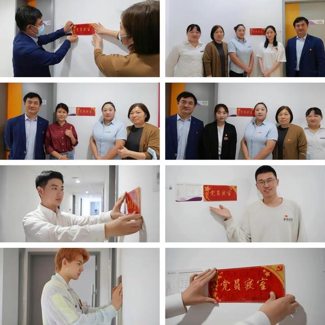 最后,公司党总支书记韩永胜老师、党总支副书记王春云老师前往员工社区,为员工党员代表寝室贴牌并合影留念。其余党员也是纷纷将这块象征着责任和使命的“党员寝室”之牌张贴到了各自的寝室门口。
