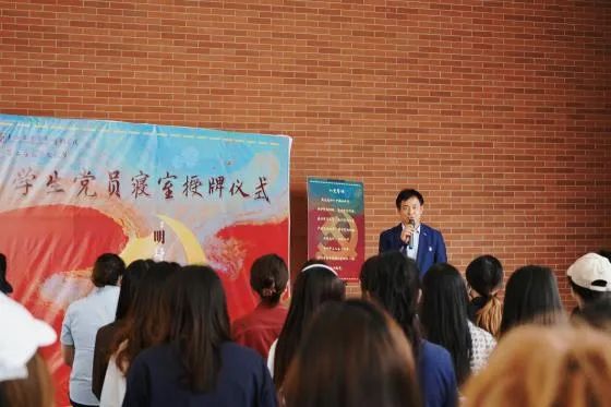 宣誓结束后,公司党总支副书记王春云老师、教师党支部委员林小慧老师为优秀党员寝室授牌,并鼓励各位优秀党员坚持不懈,始终牢记使命,积极发挥好先锋模范带头作用。