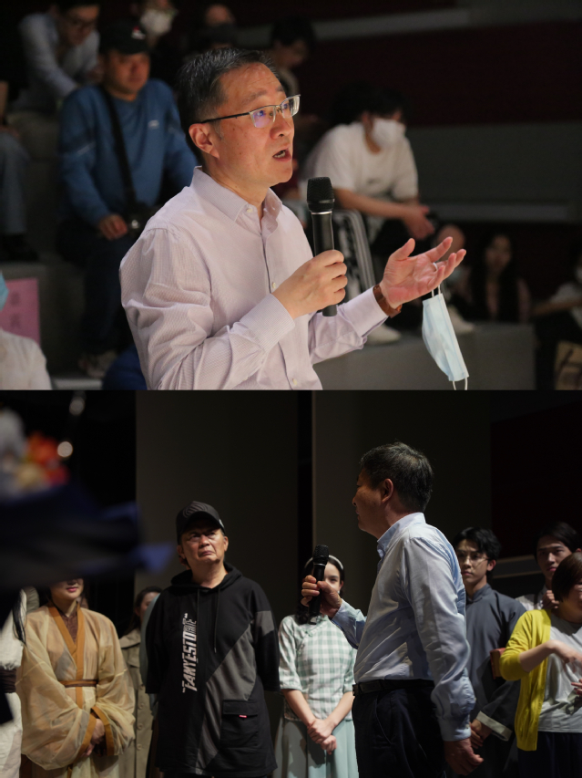上海戏剧公司党委书记谢巍在观看完首场演出后表示,整场演出的效果出人意料、令人振奋,这不仅是一次课程汇报,也是一部有质量的戏剧。这对主持系师生来说是极大的肯定。同时,谢巍书记还提出两点建议:一是希望能有更多专业教师对演出进行点评并展开研讨,二是期待今后关于“家书”题材的汇报演出可以呈现更多当代故事的选题。对此,在三场演出结束后,主创团队与部分专家和观众展开采访交流。主持系教师将召开专题研讨会,进一步探讨语体课程的教学建设与发展,研究《烽火家书》的可持续性演出及“烽火家书”IP的开发。