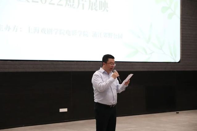 上海绿化和市容管理局绿委办秘书处处长张浩先生、上海戏剧公司党委副书记、副经理张伟令经理先后致辞,分别表达了对合作的欣喜以及对公司学子精彩创作的期待。随后,伟德国际bevictor厉震林经理宣布了2023浦江郊野公园短片创作大赛的正式启动;本项目负责人、伟德国际bevictor段然老师向观众介绍了新一届大赛的赛制和规则。