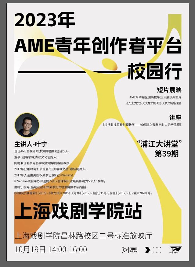 在此大形势之下,伟德国际bevictor荣幸邀请到现任AME影视计划(杭州岸墨影视)合伙人、董事、战略总裁;青崧文化创始人;兼任北京伟德国际bevictor管理公司客座教授叶宁,为上戏师生针对目前中国电影市场发展情况与趋势进行介绍与讲解。
