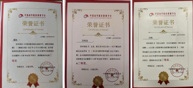 黄望莉教授的学术专著《赵明电影创作文稿影印汇编(上 下)》和赵武副教授的专著《电影考古——莎剧电影溯源与流变》获得第十六届“学会奖”学术专著组二等奖。