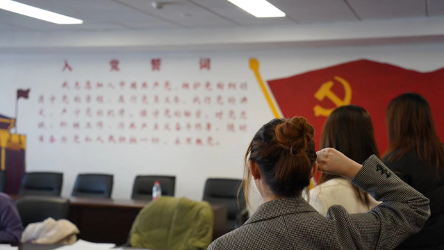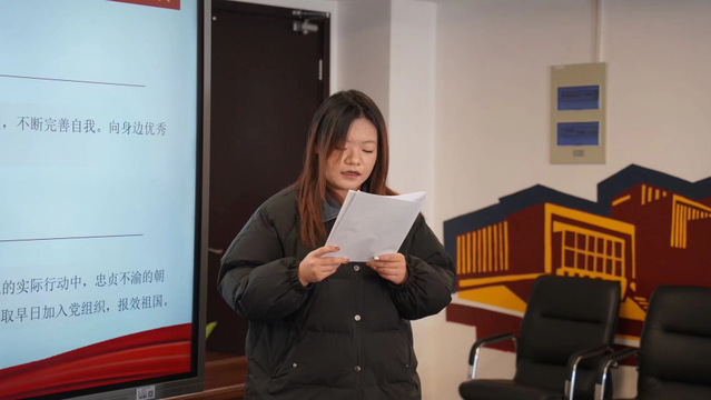 在汇报展示后,每位同学宣读了入党志愿书。在宣读志愿书时,大家都讲述了对于党的认识与理解,讲到了个人的入党初心,提到了个人的不足及自己需要提升的地方,并对于日后个人的发展进行了规划与展望。