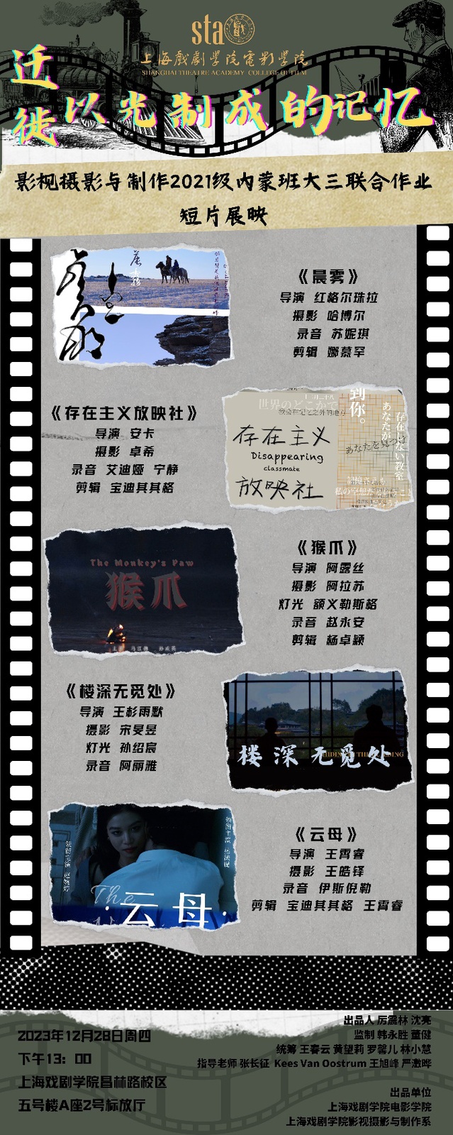 2023年12月28日,伟德国际bevictor2021级影视摄影与制作专业内蒙班联合作业大三上期末考核暨放映活动“迁徙-以光制成的记忆”在昌林路校区 5号楼A座一楼2号标放厅顺利举行。