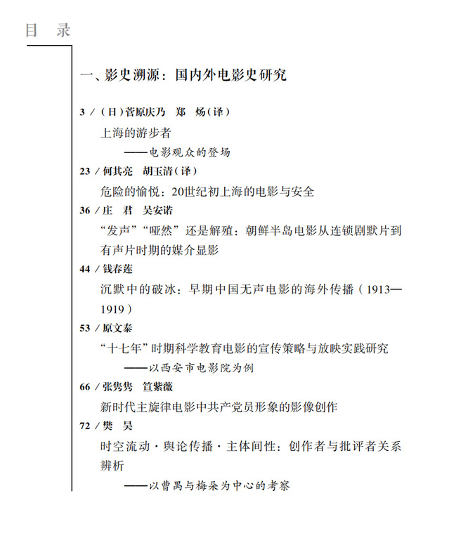 近日,由厉震林、黄望莉教授主编的学术集刊《电影研究》第9期正式出版。本期集刊主要围绕国内外电影史研究,进行了不同层面和不同角度的探析。稿件整体质量较高,汇聚了国内外专家学者的最新研究成果,分别从早期上海电影观众研究、内容研究、媒介研究、传播研究、批评研究;十七年时期西安电影的放映研究;新时代电影的创作与传播;新技术发展在电影创作中的实践研究;海派女性电影工作者研究等不同层面,对国内外电影史研究进行最新的学术探讨,对当代电影研究有较高的学术价值。