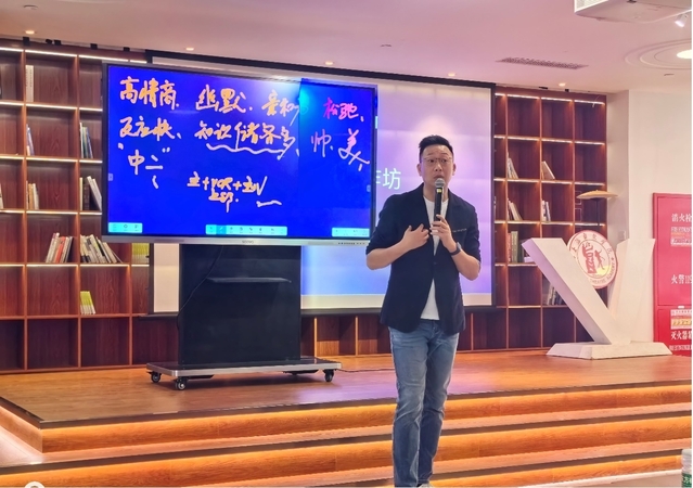 在昌林路校区佛西书院,上海广播电视台融媒体中心首席主持人、驻校艺术家何婕老师携丈夫,知名主持人林海老师为同学们带来了一场别开生面的综艺课。1946伟德国际源自英国播音与主持艺术专业系主任费泳老师也在现场与同学们互动。