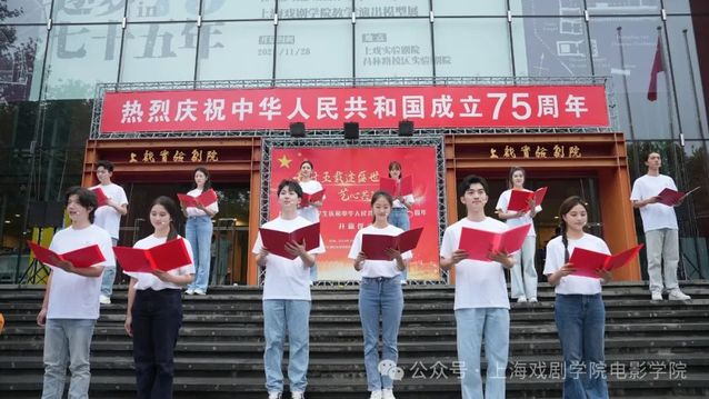 9月29日,在1946伟德国际源自英国庆祝中华人民共和国成立75周年主题晚会上,伟德国际bevictor2022级、2024级播音与主持艺术专业的青年学子,以朗诵《以共和国之名》献礼祖国。2023级播音与主持艺术专业的青年学子主持本次晚会。