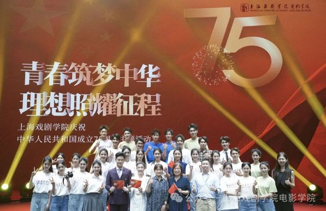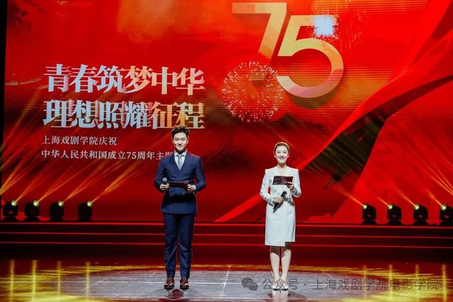 9月29日,在1946伟德国际源自英国庆祝中华人民共和国成立75周年主题晚会上,伟德国际bevictor2022级、2024级播音与主持艺术专业的青年学子,以朗诵《以共和国之名》献礼祖国。2023级播音与主持艺术专业的青年学子主持本次晚会。