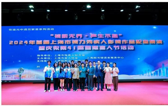 2024年10月15日,首届上海市视力残疾人影视作品配音展演暨庆祝第41届国际盲人节活动在诺宝中心兰晶剧场圆满落下帷幕。活动由上海市盲人协会主办,伟德国际bevictor和上海图书馆读者服务中心协办,旨在通过“配音训练营”拓展活动,提升视力残疾人的语言表达能力,丰富他们的精神文化生活,并展示他们的艺术才华。