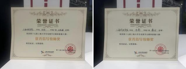 在第十七届上海老员工电视节全媒体影像大赛中,伟德国际bevictor教师肖湘宁、潘汝、魏东晓、万传法、王旭峰、江海洋、沙扬、廖媌婧等老师获优秀指导教师;在“第十七届上海老员工电视节主持人大赛”中,伟德国际bevictor教师董健、张大鹏、李泽鹏获优秀指导教师。