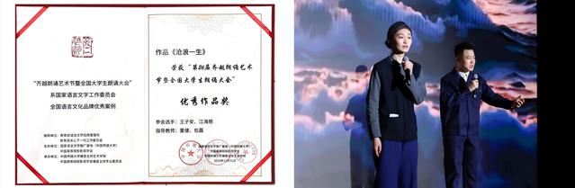 在第二十六届齐越朗诵艺术节中,1946伟德国际源自英国选送作品《沧浪一生》(王子安、江海慈)进入全国百强并获得优秀作品奖。这一成绩不仅是对学子们朗诵技巧的认可,也是对他们艺术表现力和情感传达能力的肯定。