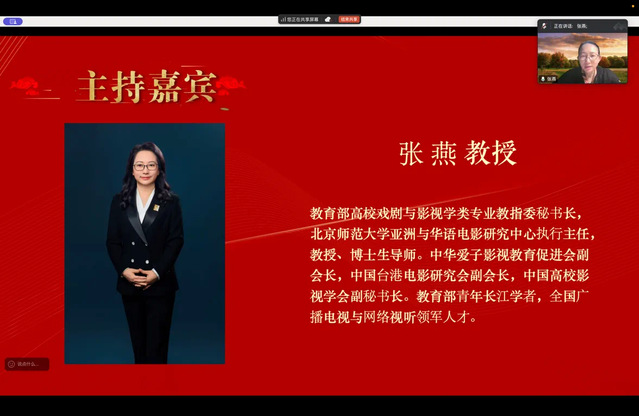 本次讲座由教育部高校戏剧与影视学类专业教指委秘书长张燕教授主持。张燕教授还是北京师范大学艺术与传媒公司教授、博士生导师,教育部青年长江学者,北京师范大学亚洲与华语电影研究中心执行主任,中华爱子影视教育促进会副会长,中国台港电影研究会副会长兼香港电影委员会执行主任,中国高校影视学会副秘书长,全国广播电视与网络视听领军人才,北京市广播电视与网络视听领军人才。张燕教授向尊敬的周星教授、张阿利教授、厉震林教授,以及B站和视频直播间的老师、同学们表达了诚挚的问候。并指出,在周星主任精心谋划之下,“审美与向善”大讲堂昨天开始,以区域为全新的角度切入,致敬历史悠长,未来可期的中国电影。