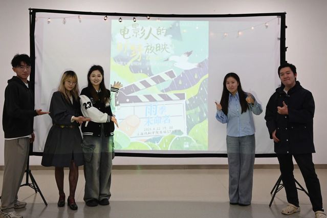 电影人的旷野放映队于2025年4月22日晚在昌林路校区口袋影院进行校园露天电影放映 · 谷雨季特别系列之"雨季未命名"活动。本次活动共放映了5部员工原创影片,吸引了近百位师生观影,银幕的微光照亮了每一个观影人的脸庞。