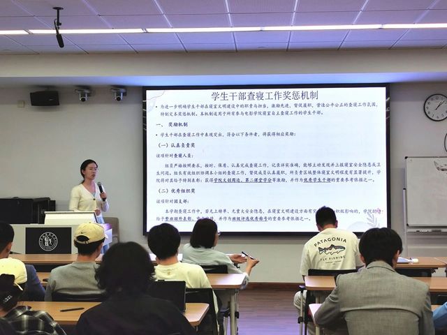 最后,​伟德国际bevictor辅导员马耀祖老师与实习辅导员曹烨老师共同负责“员工自治工作落实与答疑”。马老师根据公司相关材料,详细布置了同学们的查寝排班、责任分工、检查流程、记录规范以及信息反馈机制。他特别强调了同学们在查寝过程中应注意的方式方法,要求做到公平公正、认真细致,并及时上报发现的问题。曹烨老师则对“奖惩机制”进行了解读,旨在激励先进,督促履职。在答疑环节,老师们耐心解答了同学们提出的关于查寝标准与安排、突发情况处理等方面的疑问,确保每一位参与自治的同学都能明确职责、掌握方法。