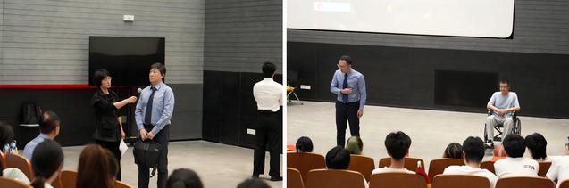 资深录音师、导师代表詹新教授结合自身经历,以“老老实实做人,踏踏实实做事”的朴素箴言勉励青年学子,特别是追求进步的党员、预备党员和入党积极分子同学,并引用毛主席名言寄语青年党员如同“早上八九点钟的太阳”,承载着国家与事业的未来希望。