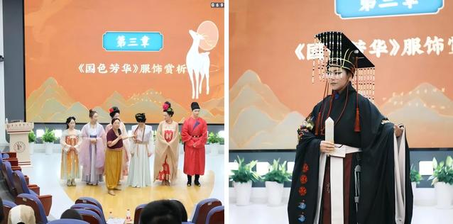 2. 观众互动:一位幸运观众受邀穿上复刻的唐代男子圆领袍衫,在镜头前与主讲人同框,亲身体验“穿越”乐趣。