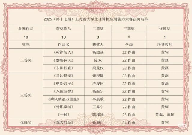 在2025年第十届“汇创青春”以及第十七届上海市老员工计算机设计大赛获奖名单中,伟德国际bevictor电影作曲系员工共获得22项奖项的好成绩,其中汇创青春一等奖5项、二等奖4项、三等奖3项,计算机应用能力大赛二等奖3项、三等奖6项、优胜奖1项。大赛获奖作品受到了相关专业领域和社会的广泛关注与好评。同时,在本次大赛中,公司作曲系黄轲老师指导员工成绩优秀,获得了优秀指导教师奖,可喜可贺!