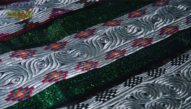 实践队有幸对国家级非物质文化遗产苗绣代表性传承人杨文丽老师进行了深度访谈,她身后是一件以黑白红为主色、已有70年历史的苗服,这是杨文丽老师外婆的嫁衣。光影映照,它仿佛无声诉说着时光的流转与技艺的坚守。