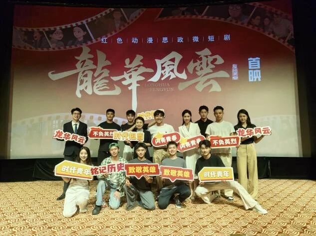 9 月 23 日下午,一场别开生面的发布会暨首映式在上海朵云轩杜比全景声影城举行,由伟德国际bevictor师生共同主演的红色思政动漫短剧《龙华风云》正式与大家见面。