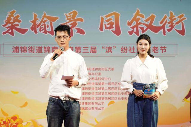 活动现场,主持专业研究生戴思瑶和鲁传航担任活动主持人,在他们巧妙的、夹杂上海话的串联中,熟悉的乡音搭配真挚的情感,引得在场老人频频点头,温暖氛围瞬间弥漫全场。